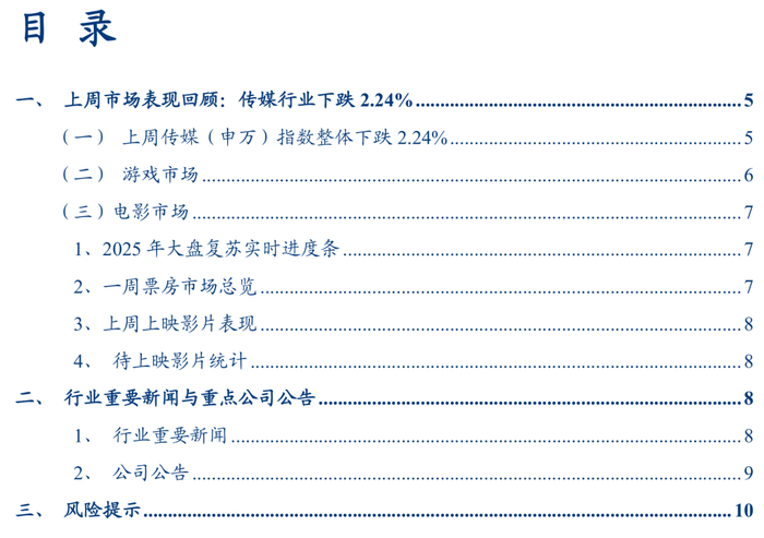 (一)上周传媒(申万)指数整体下跌2.24%