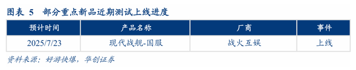 新游方面,下周新品较少。战火互娱旗下现代战舰国服将于7月23日正式上线。
