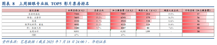 根据艺恩数据,7月14日-7月18日(周一到周五)整体票房3.70亿元(不含服务费);2025第28周观影人次共1,098.9万人;平均票价33.6元(不含服务费)。