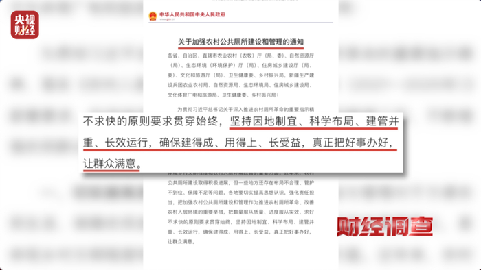 根据2022年8月,农业农村部等七部门联合印发的《关于加强农村公共厕所建设和管理的通知》中要求的“用得上、长受益”,如今却出现了“建而不用”的怪事。