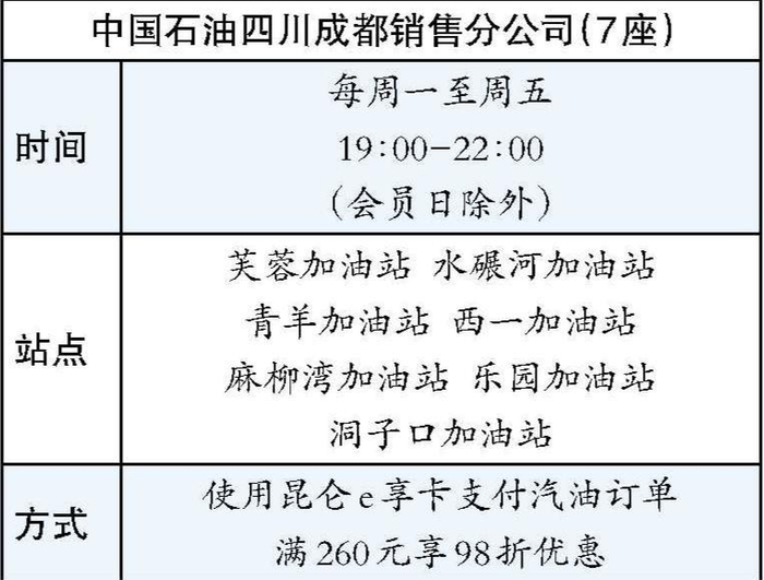 (注:具体优惠政策以各成品油销售公司公布为准。)