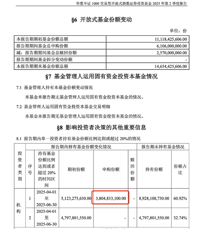 此外,中央汇金还增持了华夏中证1000ETF,增持份额超38亿份,耗资近百亿元。