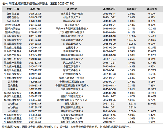 统计普通公募基金的业绩表现(不含指数增强基金、指数基金、FOF基金),新成立基金在6个月建仓期满之后才参与统计,并以开放式基金中的普通股票型基金和偏股混合型基金作为主动权益基金的样本池。上周主动权益、灵活配置型、平衡混合型基金收益分别为2.23%、1.36%、1.14%。
