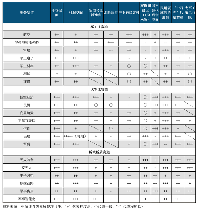 ④ 关注低空经济、民机、商业航天、深海、军贸、信息安全等军民结合领域的“大军工”投资机会;