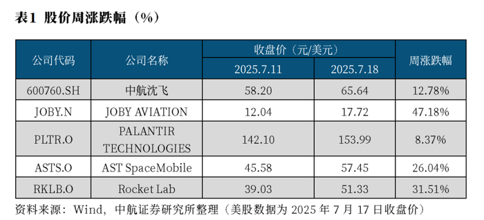 【中航证券军工】行业周报 | 从中航沈飞和JOBY等股价创历史新高看军工行业