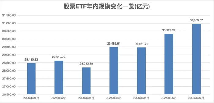 Wind数据显示,截至7月18日,全市场股票ETF规模达到3.1万亿元,创出历史新高,相比去年年末增长了2076.27亿元,年内增幅超过7%。