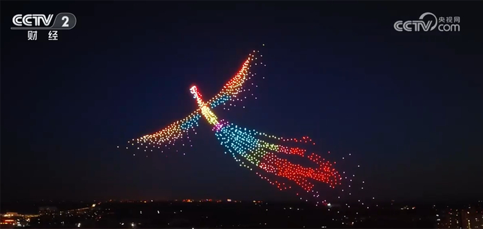 在漯河神州鸟园,天空中1000架无人机拼出多种趣味图文,水面上“空中飞人”手持火壶,抖落的火光与飞溅的水花相拥,火热的现场吸引了众多游客拍照。