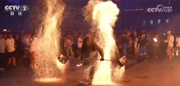 在云南丽江宁蒗县,各地游客与当地各族群众用火焰点燃夜空,共赴这场承载千年文化记忆的狂欢盛宴。火壶表演艺人赤手旋转燃烧的火壶,火苗在壶口划出金色弧线。