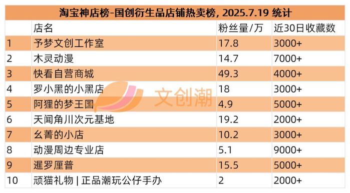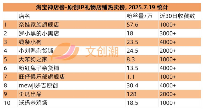 奈娃家族旗舰店、罗小黑的小黑店、线条小狗、小刘鸭杂货铺、大笨狗之家。
