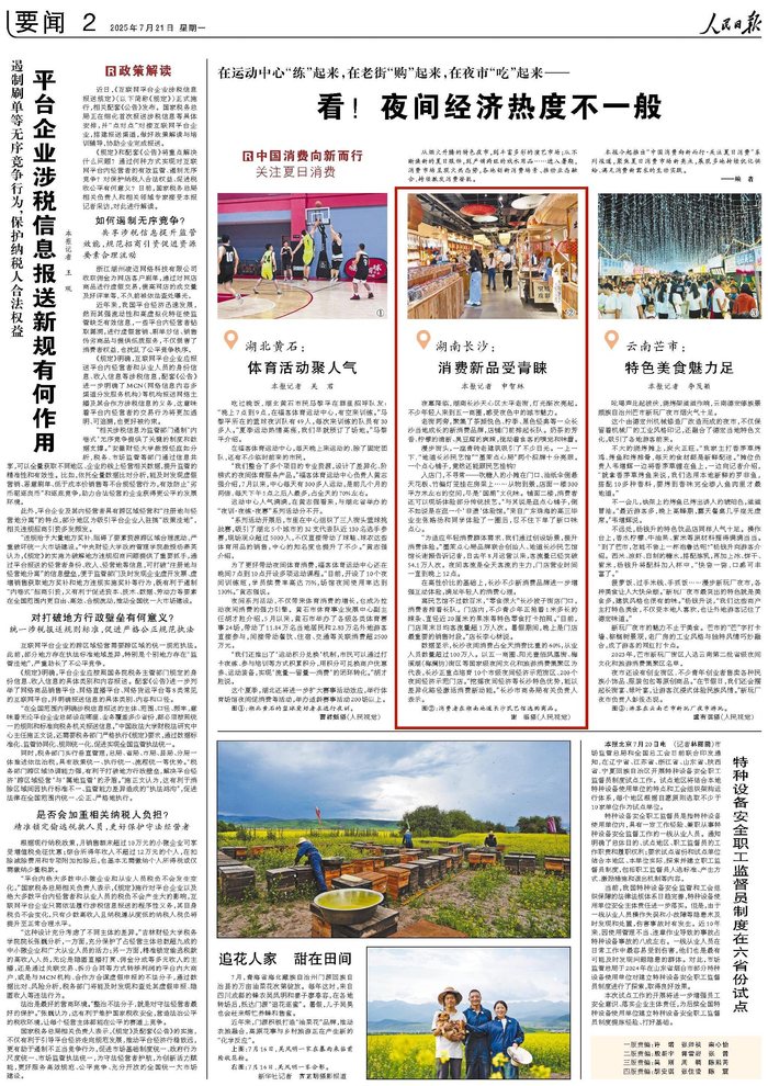 人民日报今起推出“中国消费向新而行·关注夏日消费”系列报道,聚焦夏日消费市场新亮点,展现多地持续优化供给、满足消费新需求的生动实践。