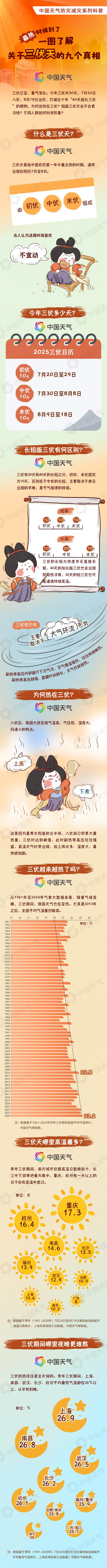 目前三伏已正式开启,意味着一年中最热的时候来了。今年三伏为30天短版,打破了近十年“40天超长三伏”的惯例。为何说热在三伏?短板三伏天会不会更凉快?不同人群如何科学防暑?中国天气网推出防灾减灾系列科普,一图了解关于三伏天的9个真相。