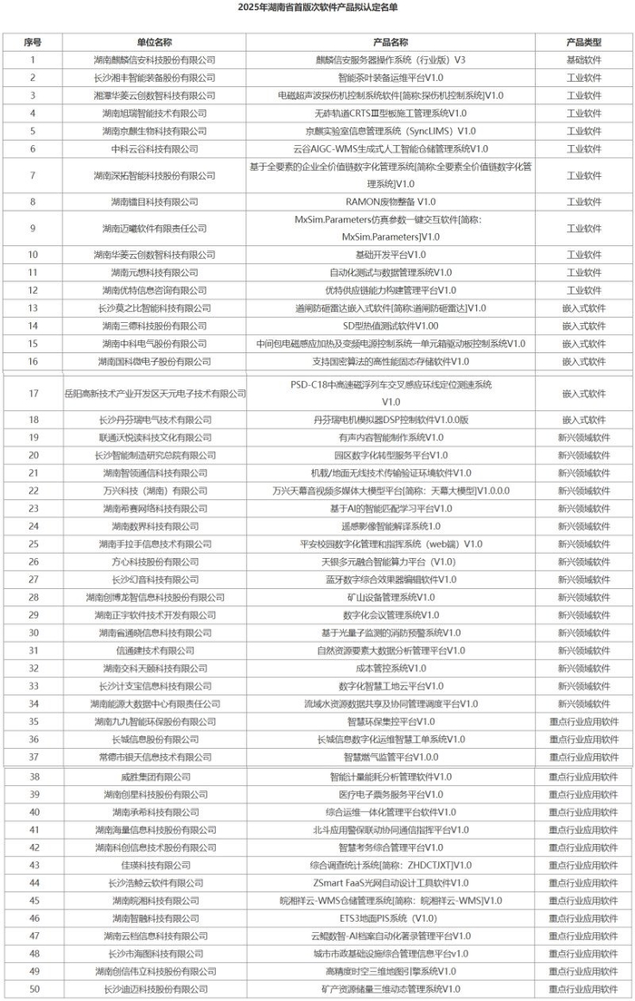 覆盖六大类别,长沙43个产品入选!2025年度湖南省拟认定50个首版次软件产品