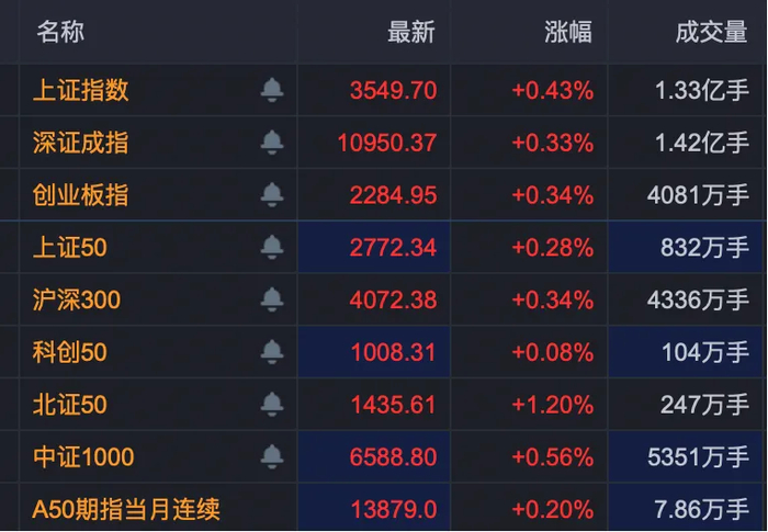 A股各大指数均集体高开。截至发稿,北证50涨超1%。