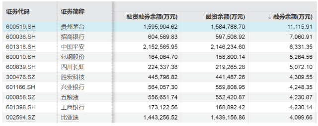 截至7月18日,A股市场融券余额居前的股票分别为贵州茅台、招商银行、中国平安,融券余额分别为1.11亿元、0.71亿元、0.63亿元。