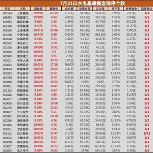 7月21日电,开盘超级水电概念集体走强,中国电建、西藏天路、保利联合、高争民爆、华新水泥等十余股竞价涨停。