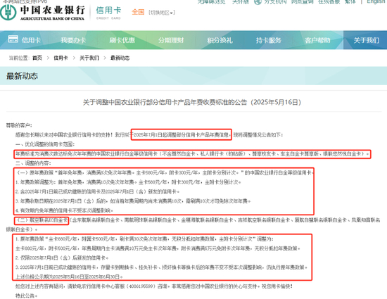 此外,2025年以来,农行、建行、华夏银行等国有行、股份行也在年内曾削减白金信用卡权益。如农行在2025年5月发布公告显示,针对年费标准为消费次数达标免次年年费的农行白金等级信用卡,将“消费满8次免次年年费”调整为“消费满10次免次年年费”,农行航空联名IC白金卡则由“刷卡满30次免次年年费”调整为“消费满10万元免主卡次年年费,附卡消费满5万元免附卡次年年费”,改设门槛。