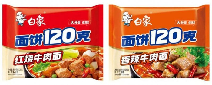 6月29日,白象食品宣布,推出以面饼克重命名的大分量方便面产品——“面饼120克”,并在包装上醒目注明。该产品是由原包装产品“多半”更名而来。
