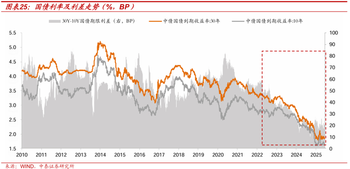 我们认为,从全球性视角来看,过去3年我国债市已经走出了较为长期的独立行情(2022年以来10Y国债利率已下行114BP,截至2025/7/8),未来的利率水平或伴随全球水位的较高表现而有所反弹。