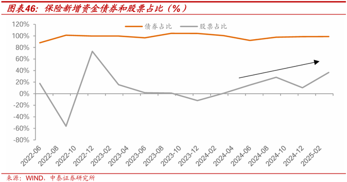 观察其他机构,保险今年负债流入下滑,资产荒大幅缓解。 保险从今年开门红以来,整体新增资金就比较乏力,去年9月,普通型保险产品的预定利率上限下调至2.5%,导致8月炒停售现象再起,一定程度上透支了客户的部分需求。