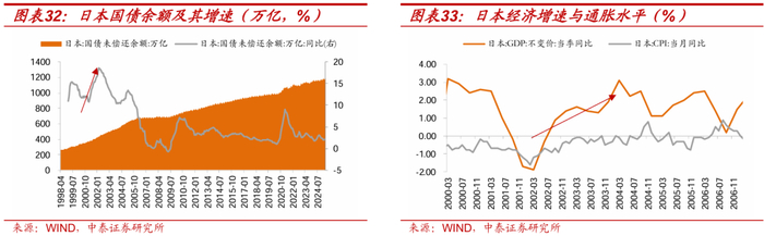 1)上个世纪90年代后,日本利率水平快速下行,1998年出现利率陡升:1991-1999年末利率趋势向零运动,背后是宽松的货币政策+经济和通胀的低迷,但期间也出现过明显的反弹,1998年10月后,日本的扩张性财政政策与减税措施,以及国债发行规模的增加,拉动利率明显上行,10Y国债收益率在期间(1998/10/2-1999/2/5)上行166BP至2.43%的点位。