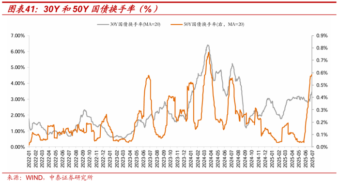 因此,即便是传统上所认为的低利率时期安全的长期债券资产,在面对通胀回归导致利率回升至正常水平时,债券价格很可能面临大幅压降。从目前我国超长债交易情况来看,30Y国债换手率在2023年开始出现大幅攀升,当前热度也相对较高。那么这种情况下,对于赚取交易收益的超长债,面临的亏损风险和波动也相对较大。