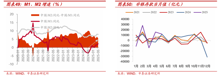 2)从银行存款到非银存款,代表风险偏好的变化。2025年4月~5月,非银存款新增规模约为2.8万亿,是2016年以来的最高值。