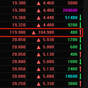 具体来看,今日上午9时30分22秒,港股东方电气出现一笔以119.90港元/股成交的订单,成交股数为400股,经计算,该笔成交金额约为47960港元。而该笔交易较前一笔成交价为19.32港元/股,随后,市场立刻对股价进行了修正,该股股价迅速回落至20.85港元/股附近。