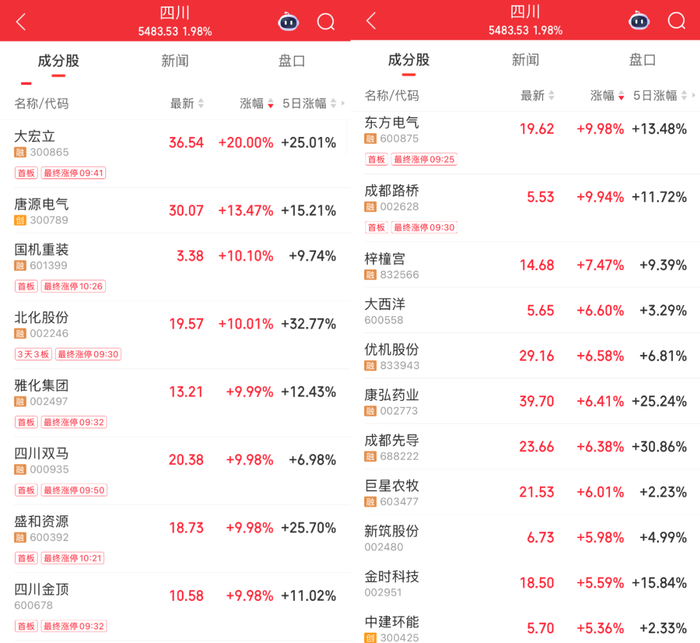 1.2万亿元超级工程引爆!大宏立、国机重装、东方电气、雅化集团、四川金顶等多只川股涨停