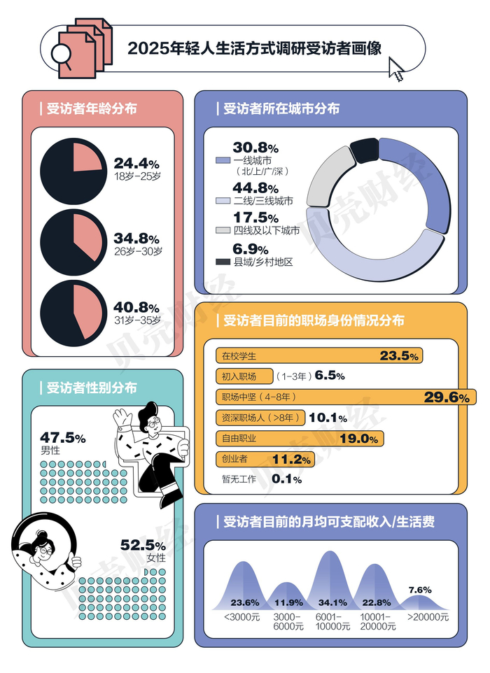 延续这一洞察,2025年7月,新京报贝壳财经推出《2025年轻人生活方式报告》,以十大生活方式趋势为切口,通过对1018位受访者的调研问卷分析,拆解年轻人如何以选择定义自我,以消费重塑关系、用选择重构秩序,如何让“有用”不再只是生存逻辑,更成为与世界深度连接的方式,也呈现出消费观背后的情感转向与社会逻辑的变化。