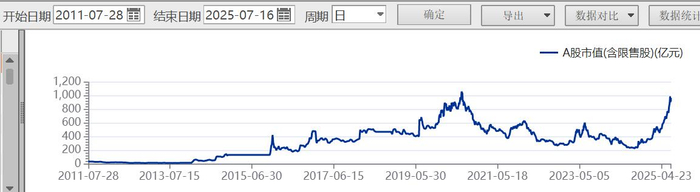 根据界面新闻统计,今年以来,公司股价从4.91元最高涨至13.73元/股,涨幅近180%。市值从年初的366亿元最高涨至993亿元,距离千亿市值“俱乐部”仅一步之遥。