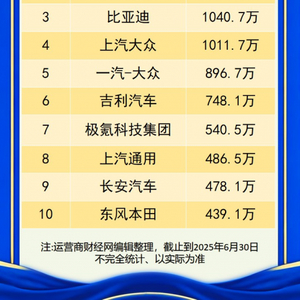 由于是以车企为统计单位,而不少车企都拥有多个子品牌或事业部,并为此开通了不同的抖音账号,所以,全矩阵粉丝数为该车企旗下所有账号粉丝数相加所得,粉丝数统计截至2025年6月30日。