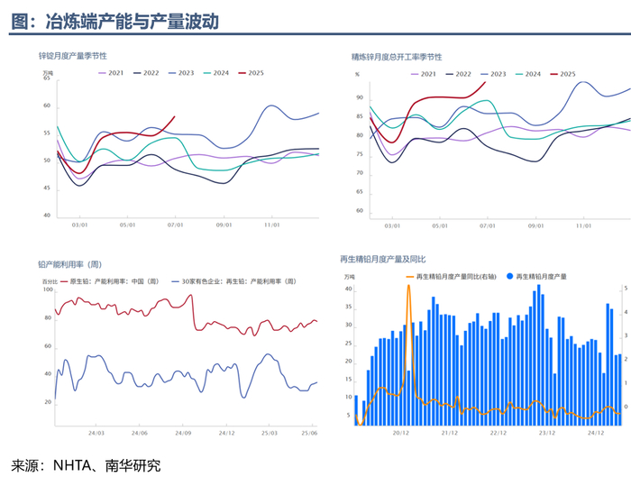 1)从矿端来看,以锌为例,锌矿对外依存度常年保持在50%上下,尤其是在今年海外矿山放量,产量符合预期时,整体矿端在下半年维持宽松预期。铅精矿由于铅本身冶炼特性,再生铅和原生铅共同驱动,造成整体价格受铅精矿供给端较小。然而再生铅在今年整体电瓶报废量下降的情况下,整体供应属于偏紧,对铅价进行成本支撑。