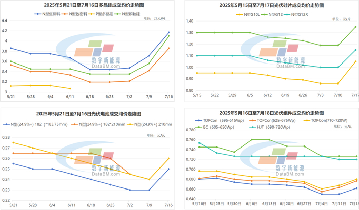 市场方面,光伏产品价格回升。根据数字新能源DataBM.com调研跟踪,目前光伏硅料、硅片、电池和组件成交价均有不同幅度的上涨。