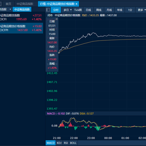 截至21日下午收盘,中证商品期货价格指数收报1437.00点,较前一交易日上涨19.80点,涨幅1.40%;中证商品期货指数收报1995.69点,较前一交易日上涨27.51点,涨幅1.40%。