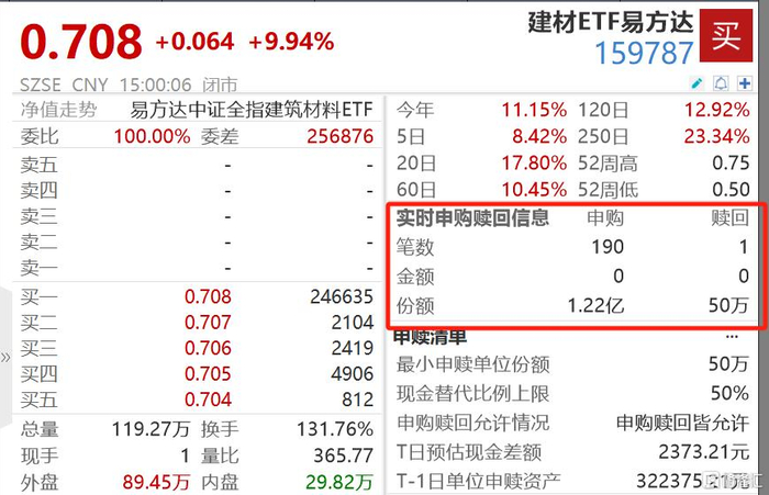 其中建材ETF易方达在盘中更是获得资金净申购超1亿份。