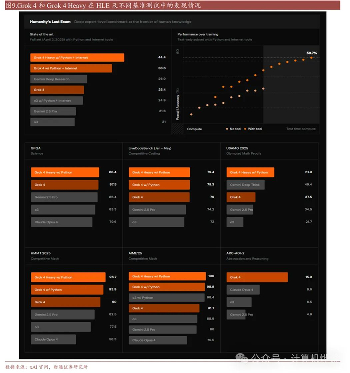 2.1 Grok 4:专攻高难任务的“理科博士”,10x算力训练量延续Scaling Law跃迁奇迹