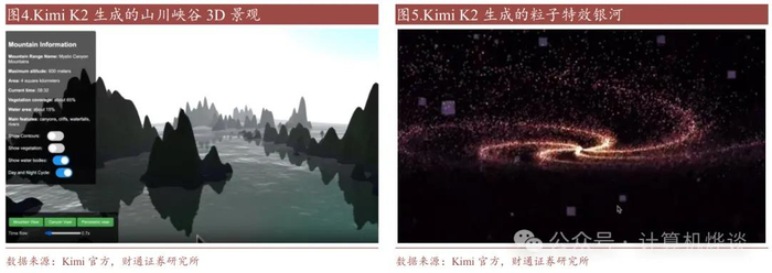 前端开发能力和APP兼容性:擅长生成兼具设计感与视觉表现力的代码,支持粒子系统、可视化和3D场景等表现形式,具备较强的图形能力与交互性。