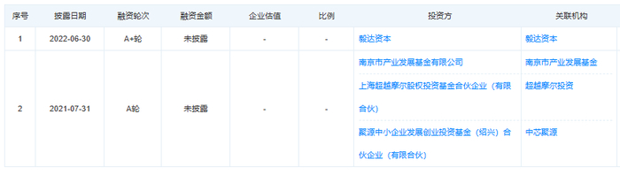 融资历程方面,工商信息显示,沁恒微共经历过两轮融资。值得注意的是,沁恒微于2021年7月完成的A轮融资投资方包括地方国有资本南京市产业发展基金有限公司以及知名产业资本上海超越摩尔股权投资基金合伙企业(有限合伙)、聚源中小企业发展创业投资基金(绍兴)合伙企业(有限合伙);其最近一期的融资发生在2022年6月,投资方为毅达资本。