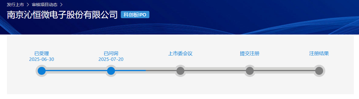 《科创板日报》7月21日讯(记者 陈俊清) 今日(7月21日),上交所网站更新发行上市审核动态,南京沁恒微电子股份有限公司(下称“沁恒微”)科创板IPO审核状态变更为“已问询”。