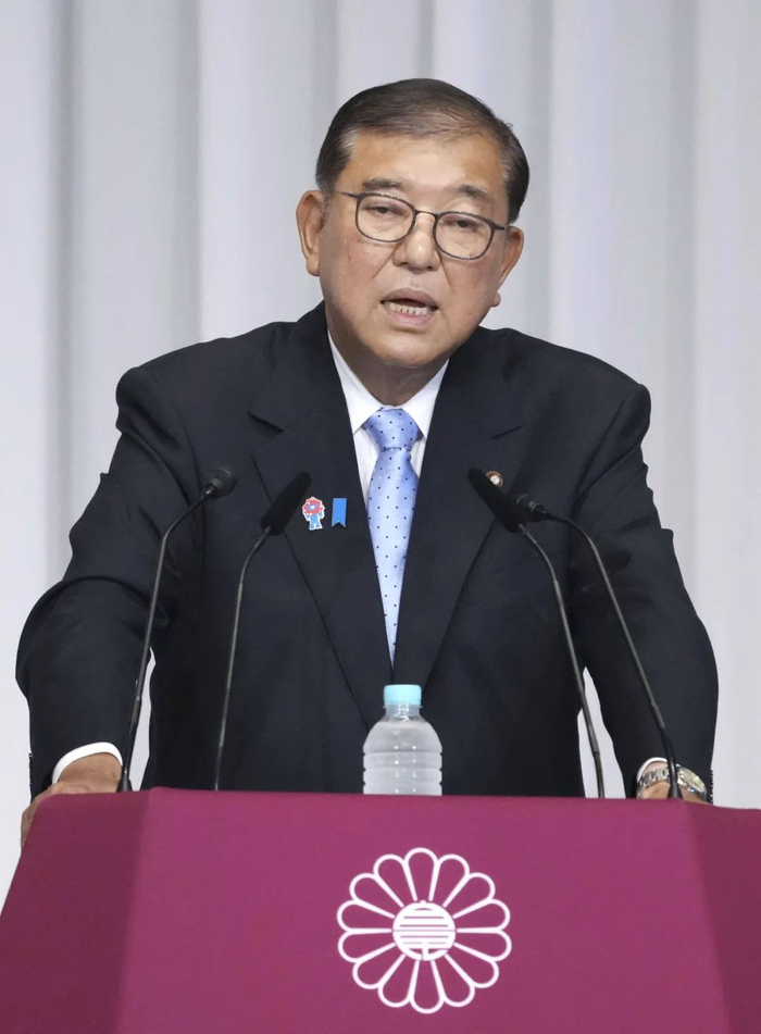 7月21日,日本首相石破茂在记者会上发言。新华社发