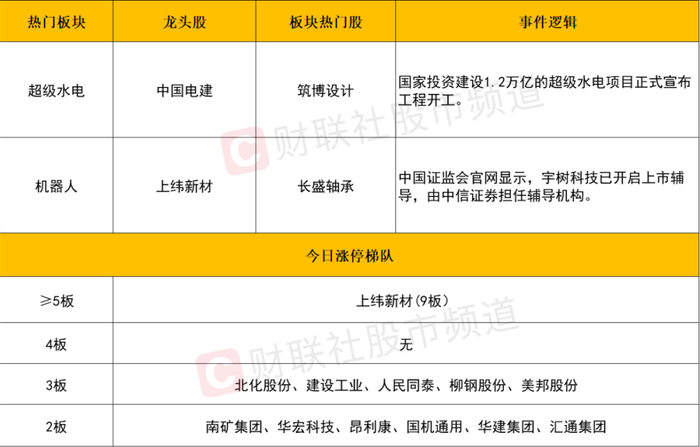 赚钱效应标签:雅江水电站、民爆、宇树机器人;