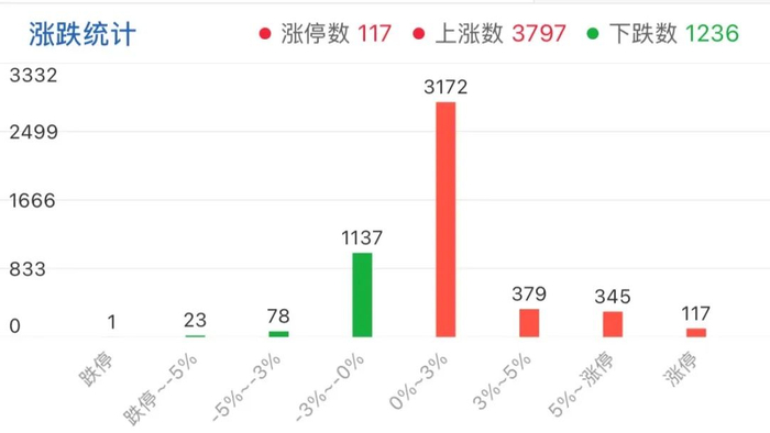 又是赚指数不赚钱的一天,4000家红盘,但有3000多家的涨幅都在4%以下,妥妥的提供情绪不提供热度。