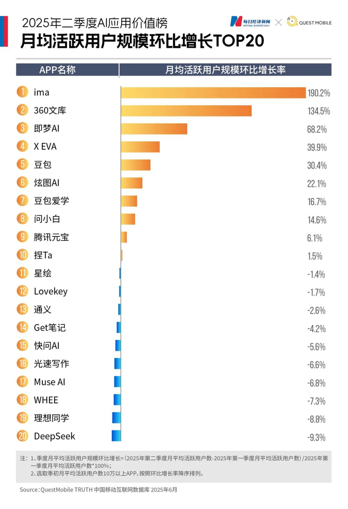 大洗牌!智谱、文小言、可灵AI月活集体下滑,“AI+办公”“AI+教育”异军突起|2025年二季度AI应用价值榜