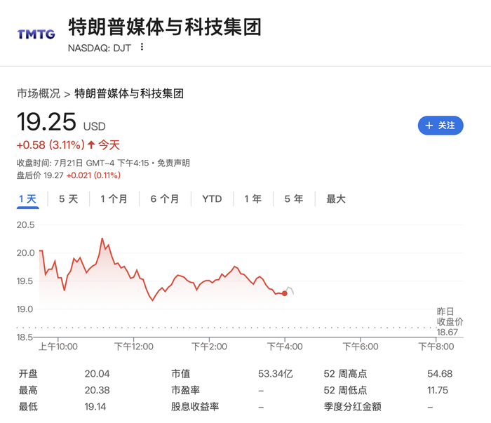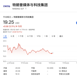 该公司在新闻稿中称,比特币目前占其流动资产总额的三分之二左右。受此消息推动,特朗普媒体股价在周一早盘一度上涨9%,截至美东时间周一收盘仍上涨3.11%。