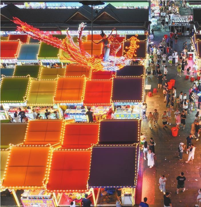 夜经济一头连着居民生活,一头连着经济发展。近年来,我省不断丰富夜间消费服务供给,发挥文旅资源特色优势,打造多元化消费新场景,通过“文旅+消费”的模式,激发夏日夜经济活力。图为市民和游客在沈阳市皇姑区塔湾兴顺夜市品美食、看表演,享受丰富多彩的夜生活。