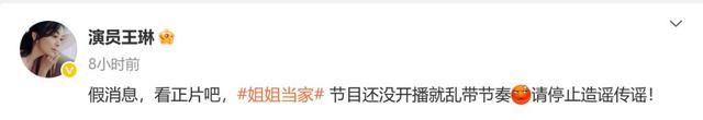 7月21日,对于在综艺《姐姐当家》预告片中“王琳疑似被儿子掌掴”的争议,演员王琳发文回应,表示:“假消息”,并呼吁“停止造谣传谣”。