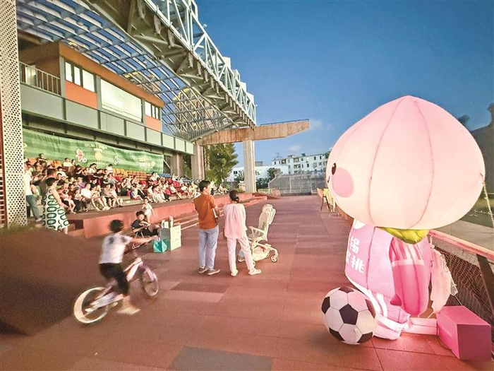 借势“苏超”,各大商圈、市集纷纷打造沉浸式活动,带动场外人气如虹。刚刚过去的“苏超之夜”,无锡招商城夏日星空夜市迎来高光时刻,广场中央设置150套桌椅,成为球迷们加油助威的“聚集点”,一张张仰起的脸庞与绿茵场上的拼抢画面完美交融。夜市还通过发放竞猜券,抽取猜对赛果的球迷发放奖品,提前点燃期待,现场啤酒争霸赛与大屏互动轮番登场,牢牢锁住人气。“是我去过的几个户外观赛场所里最热闹的,以后有机会还会常来!”穿着代表无锡的粉色队服前来观赛的球迷刘先生成为当天的幸运获奖者。无锡招商城相关负责人介绍,7月20日当晚客流量达10000人次,较平时暴涨150%。
