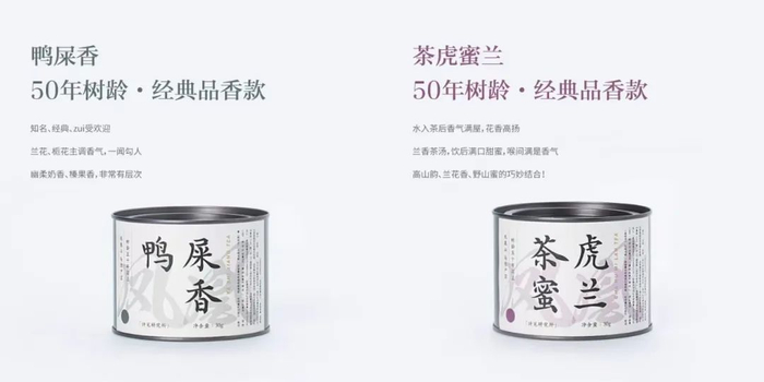 【鸭屎香】:经典款,兰花与栀花交织的馥郁香气开篇,瞬间俘获嗅觉。名俗香雅,香味高强,滋味浓醇鲜爽,润喉回甘!