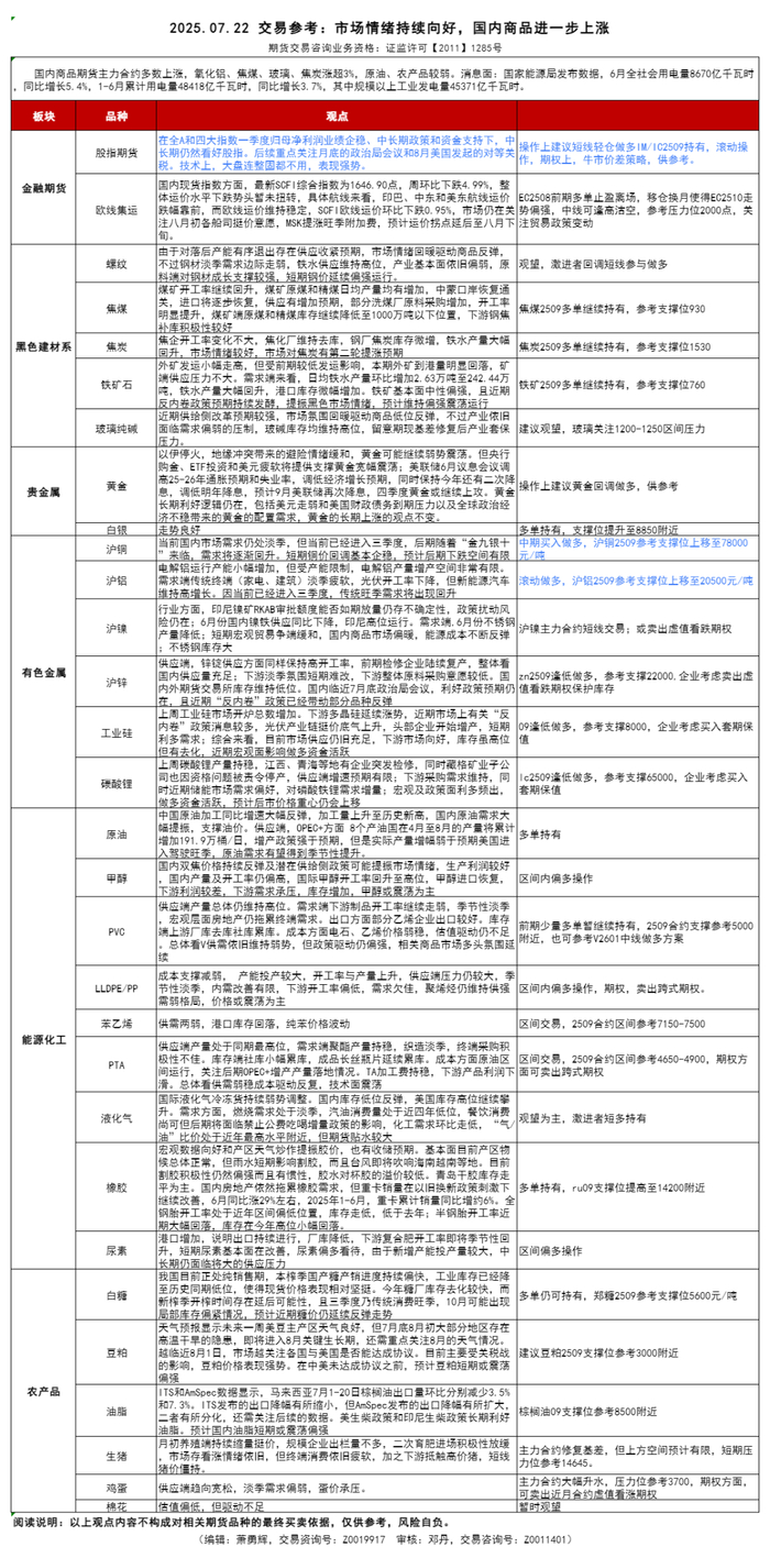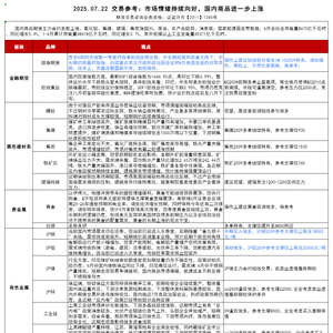【交易参考】7.22:市场情绪持续向好,国内商品进一步上涨