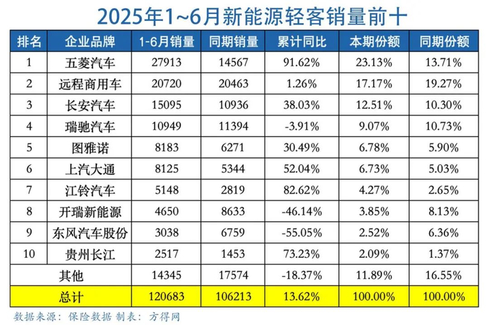 2025年6月新能源轻客再超2.4万辆、半年已达12万辆!